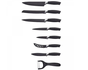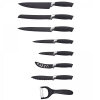 A 7-piece knife set with non-stick coating and a peeler, in an elegant black design, will enhance your cooking experience. Every kitchen should have this complete set, which provides all the necessary blades for a variety of kitchen tasks with ease and precision.