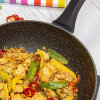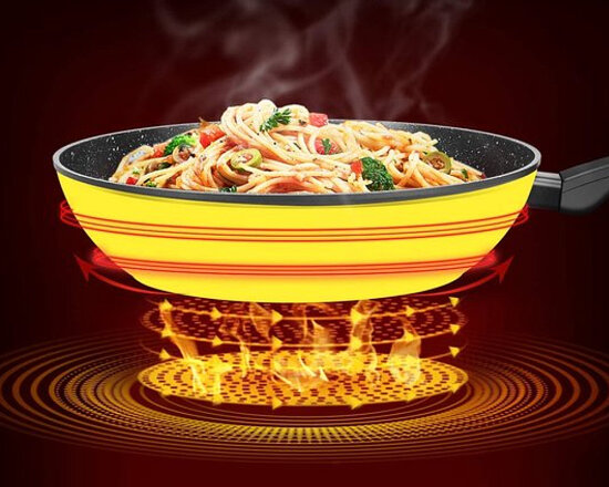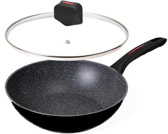This 28cm non-stick wok pan is made from a forged aluminum alloy that conducts heat quickly and evenly with precise temperature control. Food heats quickly and evenly on this skillet and slides onto the plate once it's ready.