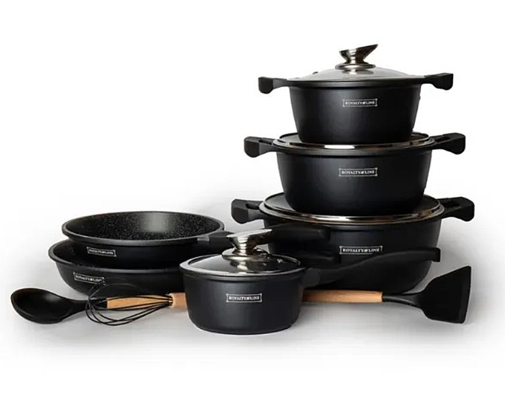 Set posuđa s mramornim premazom, RLBS1010M - crni