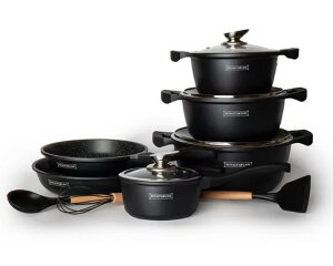 Vrlo opsežan set dobar je prvi korak ka dobrom i zdravom kuhanju. Posude imaju visokokvalitetni mramorni premaz i prikladne su za sve izvore topline, uključujući indukciju i pećnicu (osim ručki). Ukratko, ovaj set posuđa ne smijete propustiti imati u svom domu!